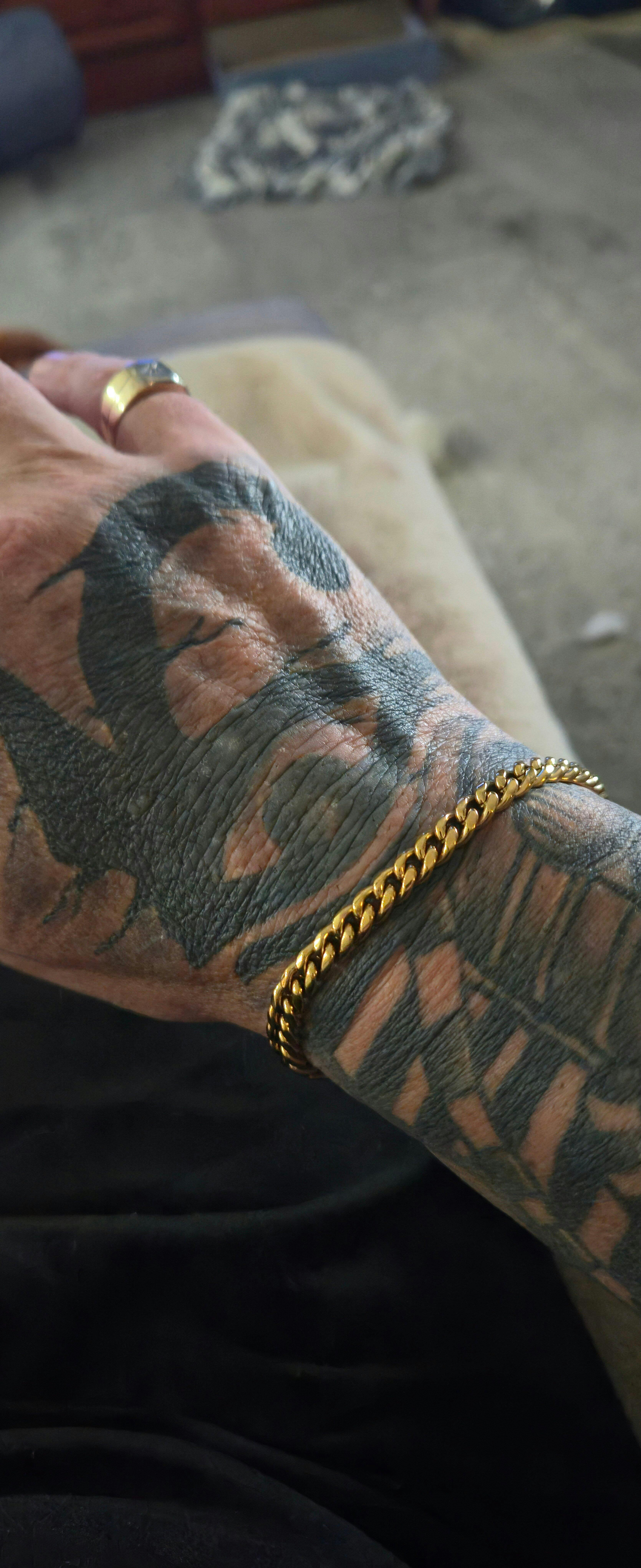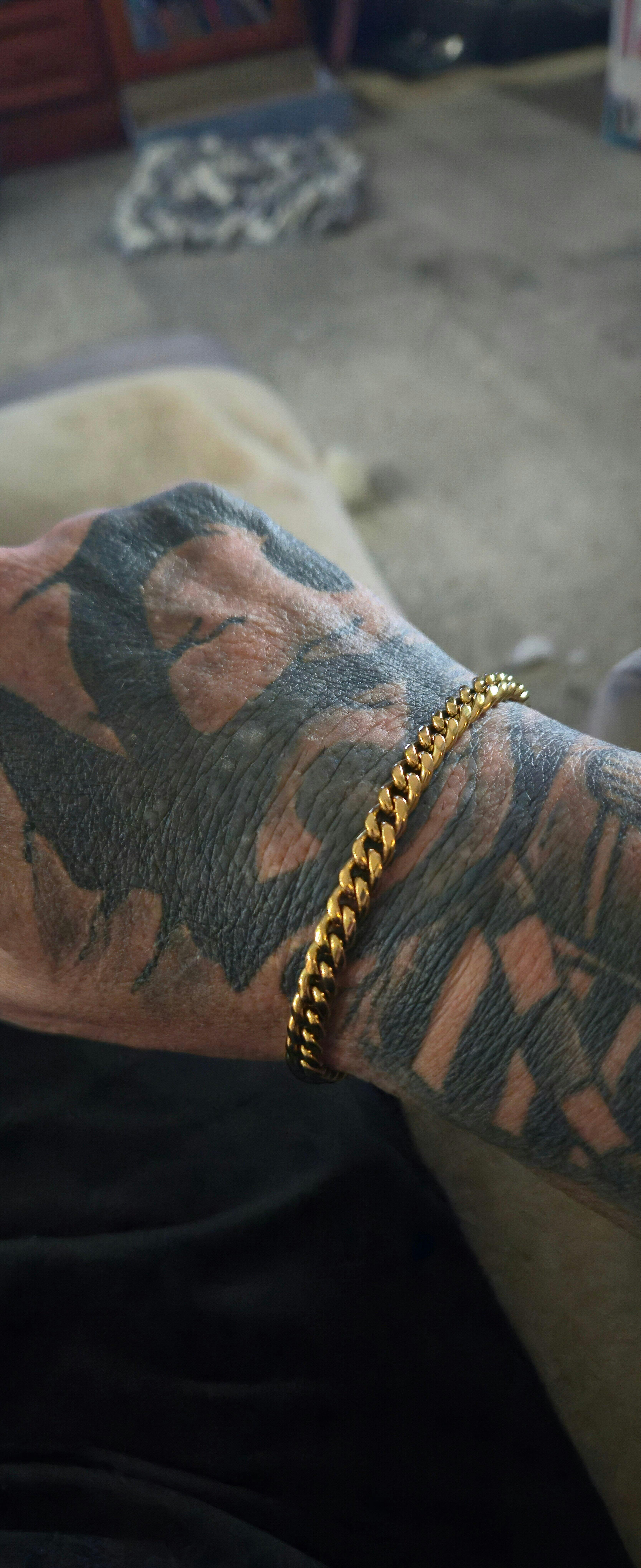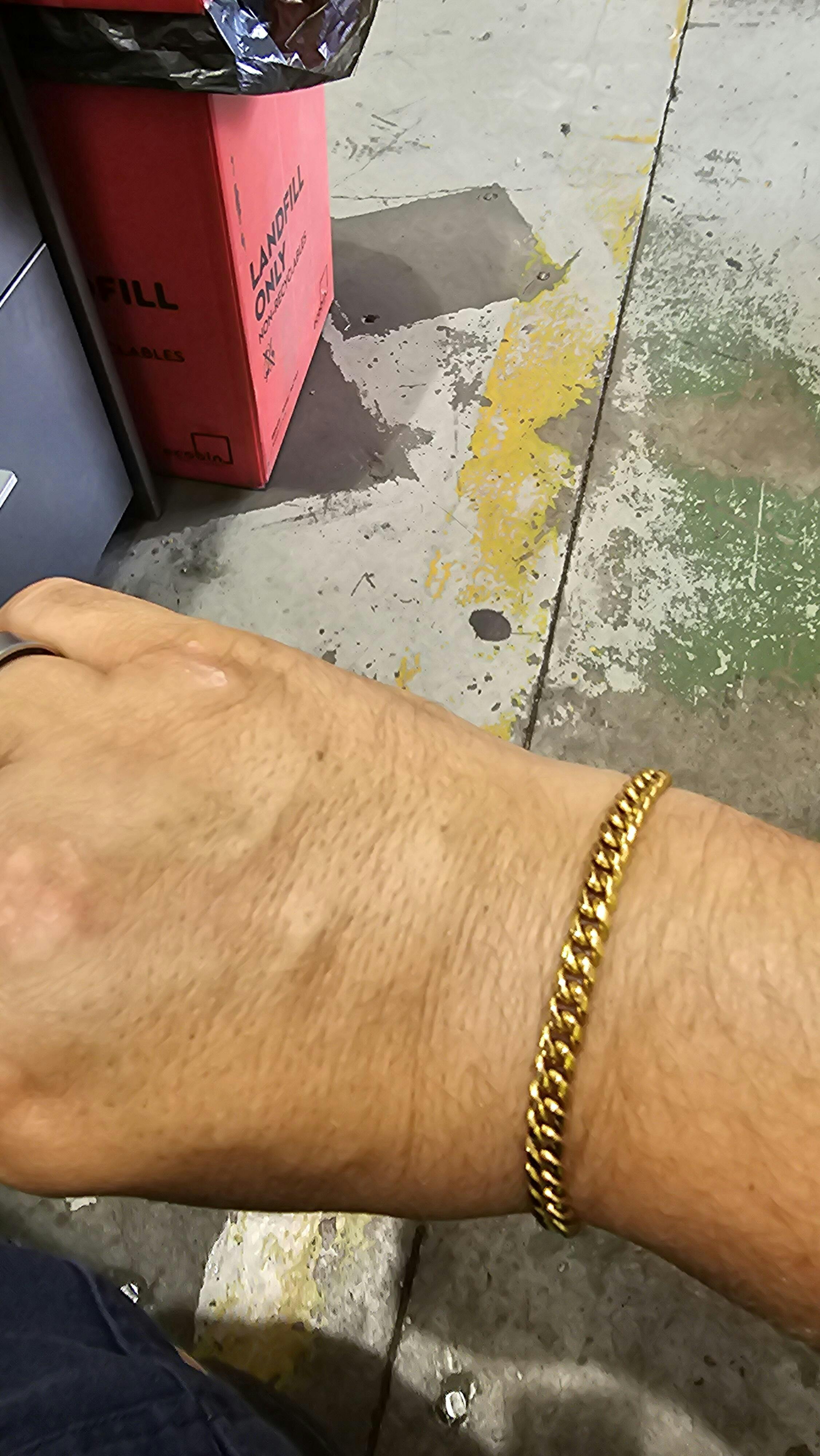 I love jewellery. and bling. Have to say. Its bloody good. I thought it mightve been abit heavy. Which its not. Fits good. Clamp is good. Ive had 9k gold chains. And bracelets. And im forever replacing the clamps due to wearing down, and splitting. And $200 to fix everytime they do. So this bracelet is a no brainer. Its more yellow gold than my 9k rings. And chain. Even my 14k chain looks dull to this. Well done twokxngs. Now u just need to get more stock in. Thicker chains. And bracelets. Highly recommend this seller. Took one day to get to me in Adelaide. 5stars.